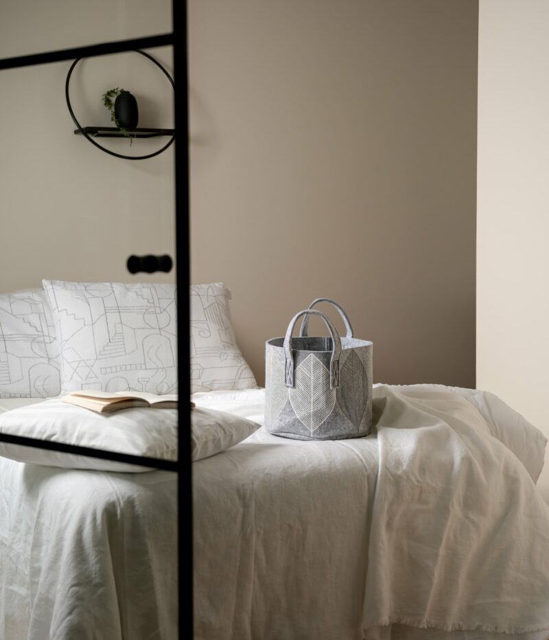De opbergmand is gemaakt van gerecyclede PET-plastic flessen. Het viltachtige materiaal is licht van gewicht en toch duurzaam. UV-bescherming voorkomt dat het materiaal verkleurt in de zon. De opbergmand is niet waterdicht, dus afhankelijk van het gebruik kan een onderlegger nodig zijn.